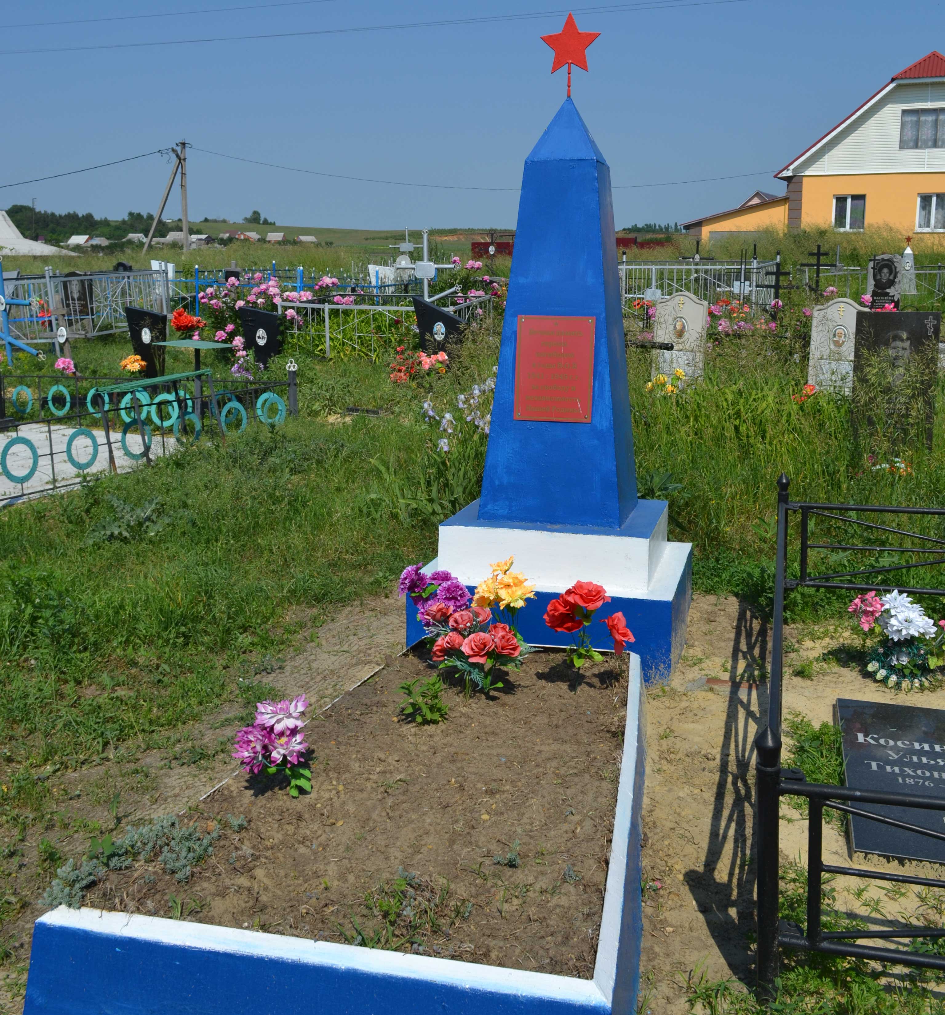 Памятник установлен на территории кладбища. Памятник железный окрашен эмалевой краской.На передней части памятника прикреплена табличка с надписью «Вечная память героям, погибшим в годы В.О.В. 1941- 1945г.г. за свободу и независимость нашей Родины».Захоронено 32 воина. Памятник местного значения, внесен в государственный Реестр объектов культурного наследия народов Российской Федерации.Охраняется государством.